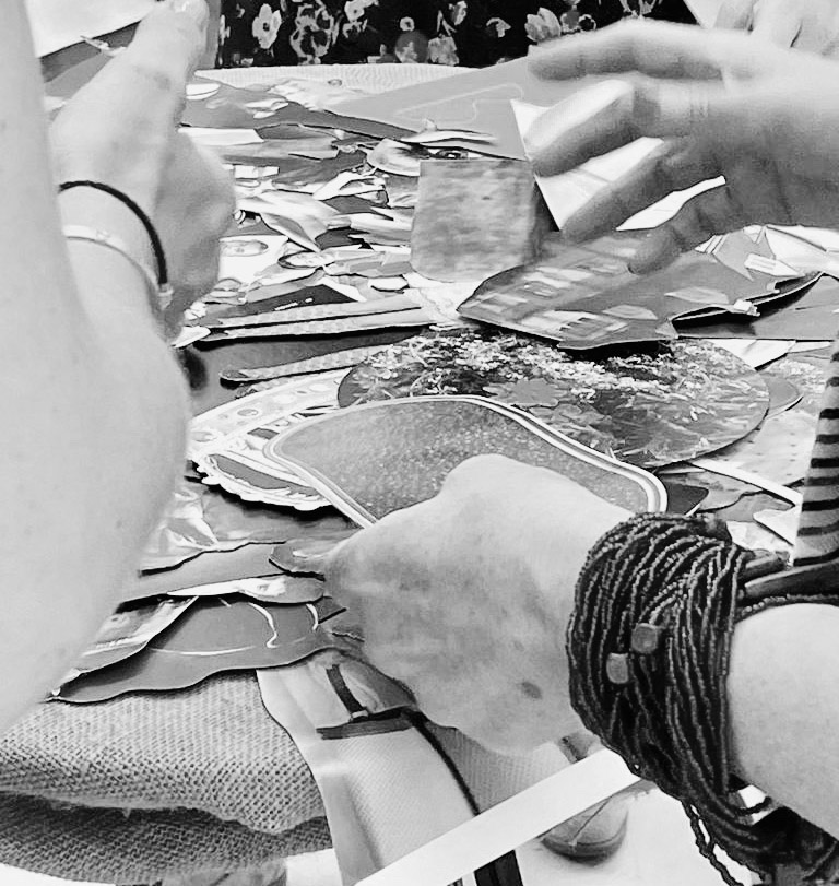 Le moment de la création. À travers la sélection d’images, le découpage et l’assemblage, vous laissez votre intuition et votre esthétique guider vos mains.